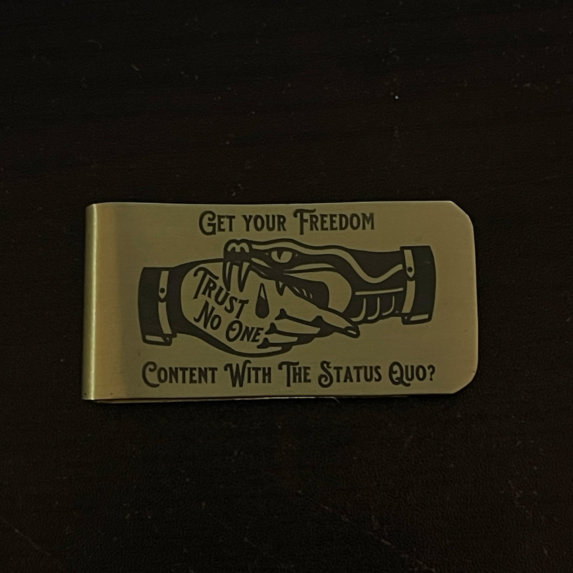 ビンテージ調のマネークリップが付属する